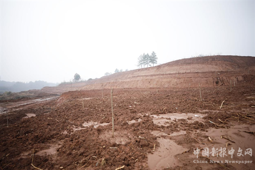 一棵棵新栽下的枇杷樹苗錯落有致地分布在山坡上。