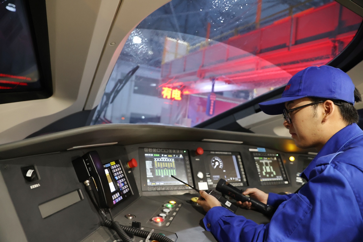 檢修人員對(duì)動(dòng)車司機(jī)室各項(xiàng)功能進(jìn)行檢查。中國(guó)日?qǐng)?bào)記者 姜東 攝