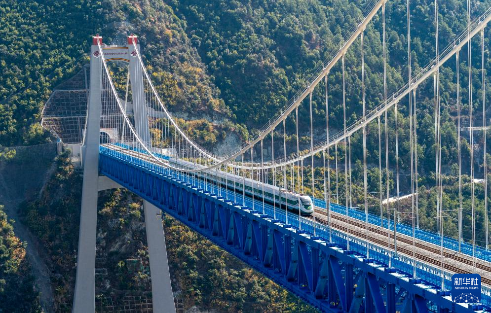1月24日,列車通過虎跳峽金沙江鐵路大橋。