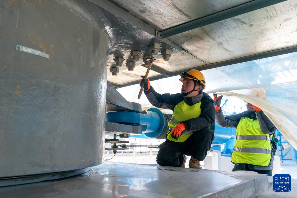 1月24日,工區(qū)職工趙澗泉(左)在檢查螺絲。