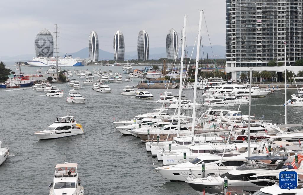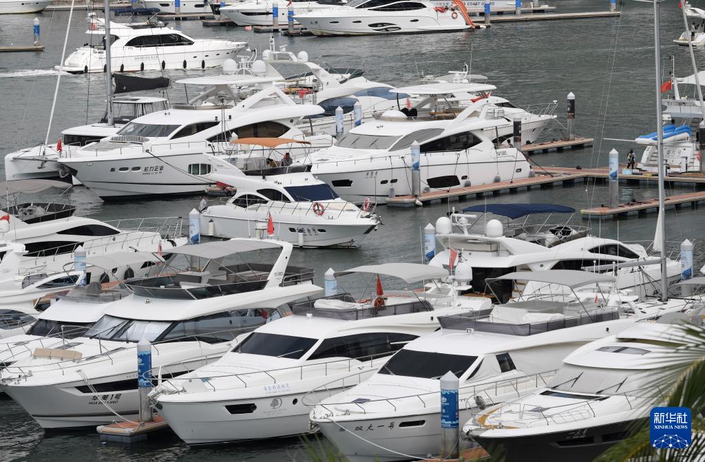 2月5日,在三亞鴻洲游艇碼頭,游艇密集返航進港。
