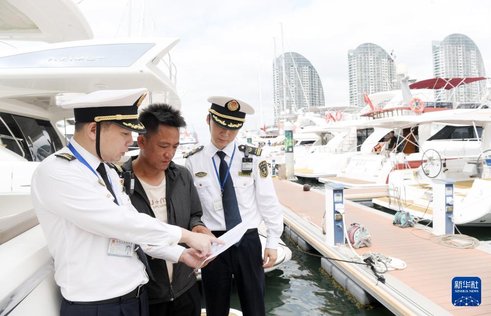 2月5日,在三亞鴻洲游艇碼頭,三亞海事局執(zhí)法人員對游艇進行安全檢查。