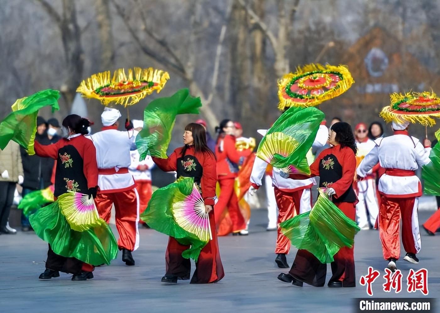2月5日,新疆烏魯木齊市人民公園,一支民間社火隊(duì)伍隨著鼓點(diǎn)聲,扭起秧歌、揮舞彩扇,有序地進(jìn)行排練?,F(xiàn)場鑼鼓喧天,歡樂喜慶的氣氛,吸引眾多市民圍觀,感受濃濃年味。