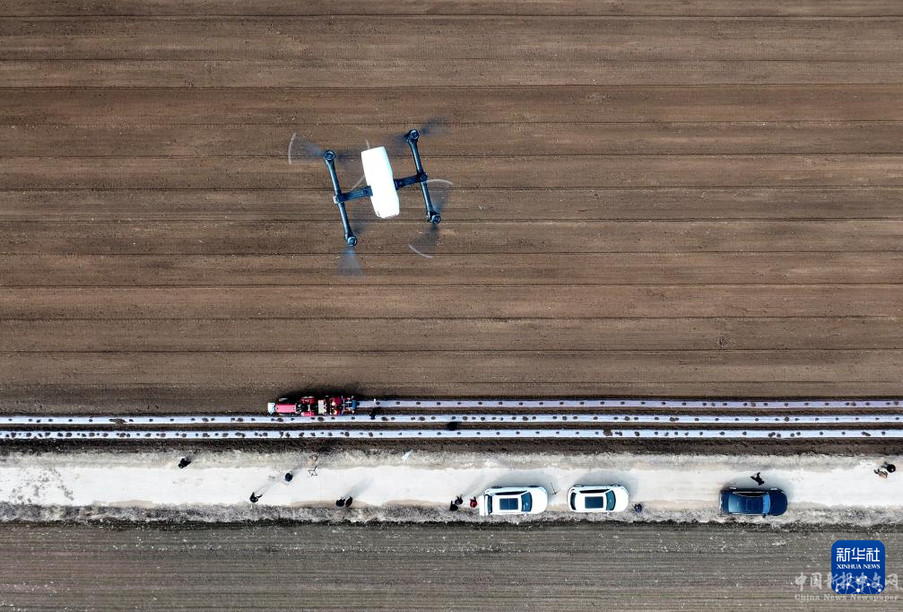 2月29日,航測(cè)無(wú)人機(jī)在山東萊西市店埠鎮(zhèn)左官屯村農(nóng)田上空進(jìn)行測(cè)量(無(wú)人機(jī)照片)。