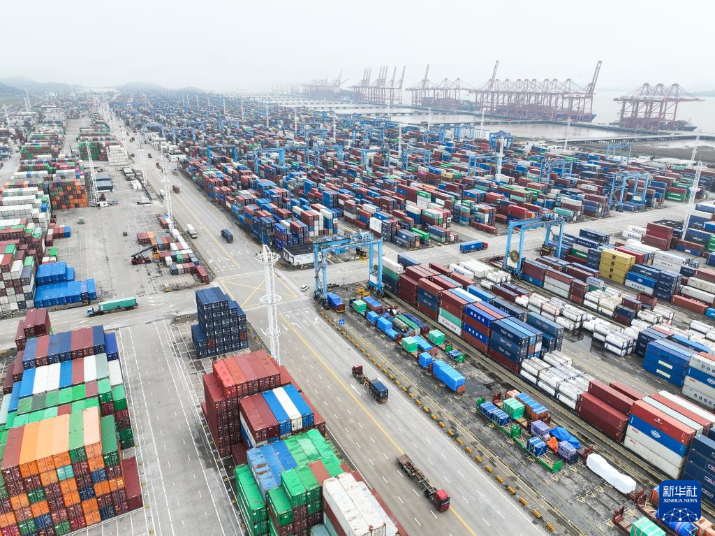 4月2日拍攝的寧波舟山港梅山港區(qū)(無人機(jī)照片)。