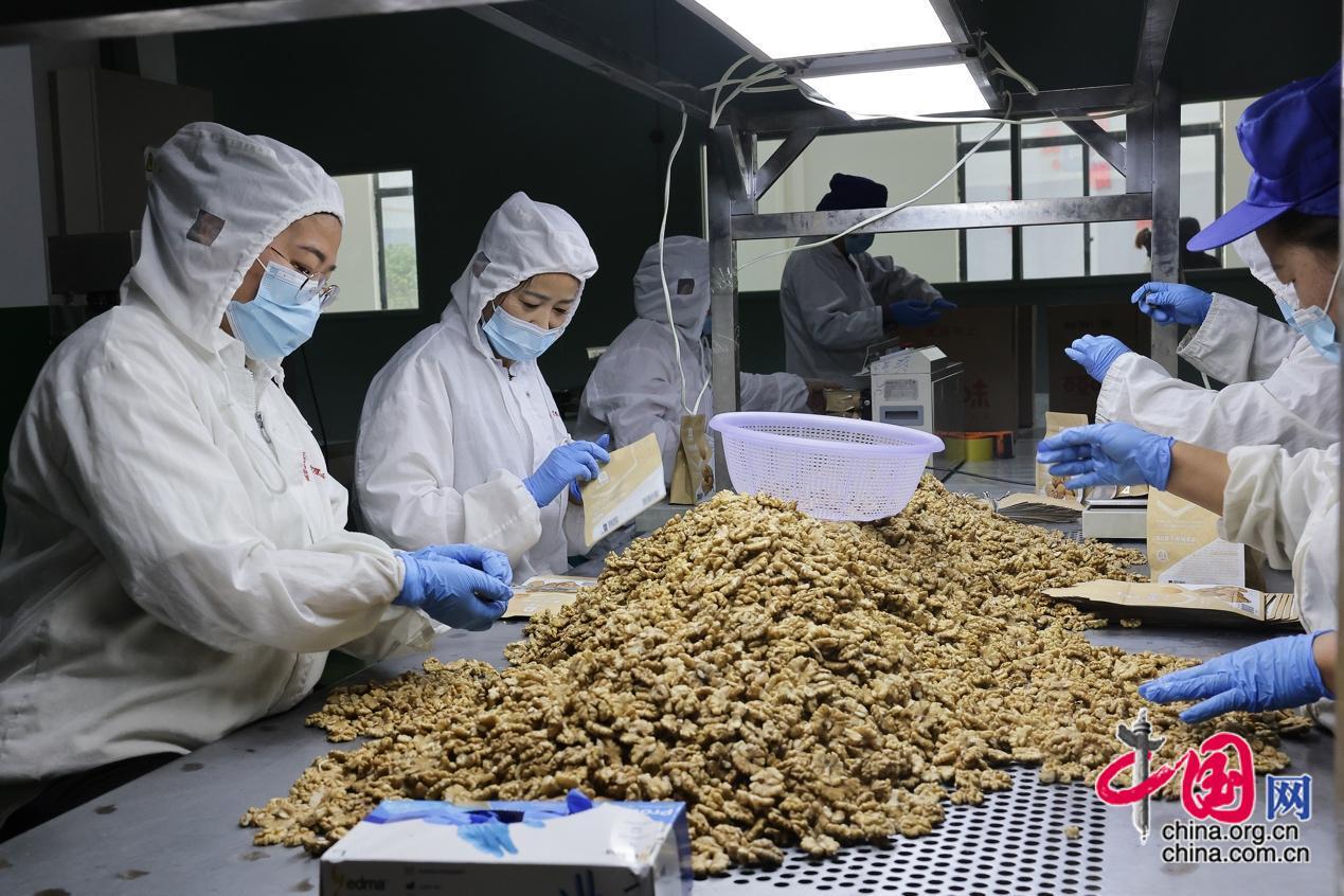 4月2日,工人們?cè)谂R滄工投順寧堅(jiān)果開發(fā)公司廠房包裝核桃果仁。據(jù)介紹,鳳慶縣按照核桃品級(jí)進(jìn)行分類優(yōu)選,一等果進(jìn)行大宗貿(mào)易銷售,其他等級(jí)果通過破殼取仁、分類加工提升產(chǎn)品附加值。做好延鏈增值文章,從核桃樹葉、核桃青皮、核桃硬殼、核桃仁、核桃分心木、核桃木材等產(chǎn)品研發(fā)加工入手,策劃包裝了核桃全生命周期7個(gè)環(huán)節(jié)40個(gè)項(xiàng)目。中國(guó)網(wǎng)記者 董寧 攝影