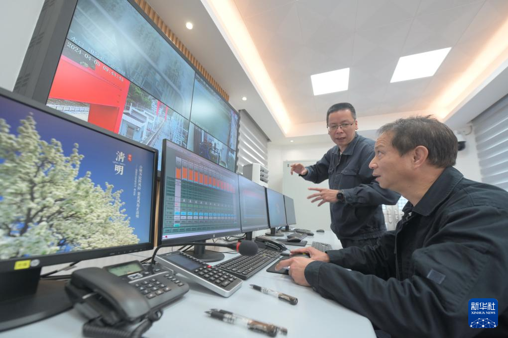 4月5日,福建水口水電站水工處閘門運(yùn)行班黃丹健(右)、鄭文源通過電子監(jiān)測(cè)系統(tǒng)密切關(guān)注水情。