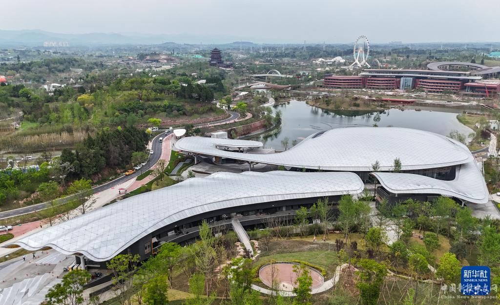 成都世園會(huì)主會(huì)場(chǎng)里的主展館(4月12日攝,無人機(jī)照片)。
