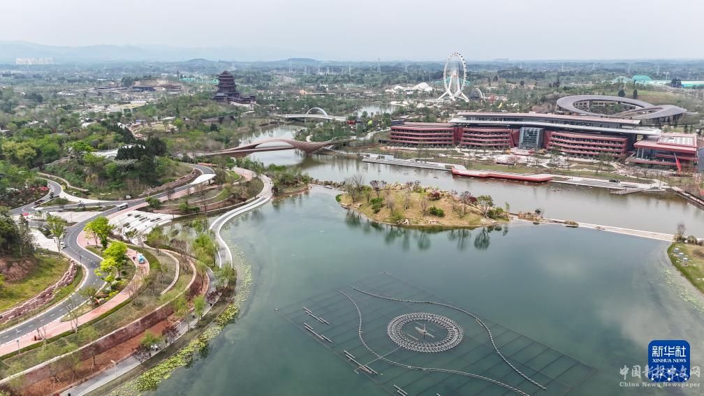 成都世園會(huì)主會(huì)場(chǎng)一角(4月12日攝,無人機(jī)照片)。