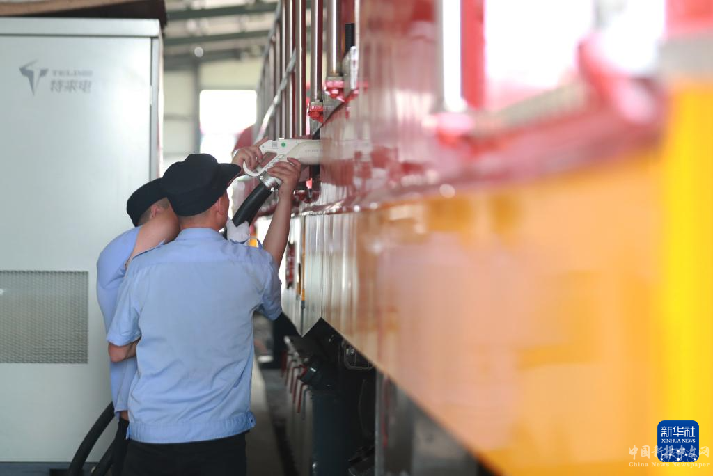 4月21日,乘務(wù)員為東風(fēng)7型新能源改造機(jī)車充電。