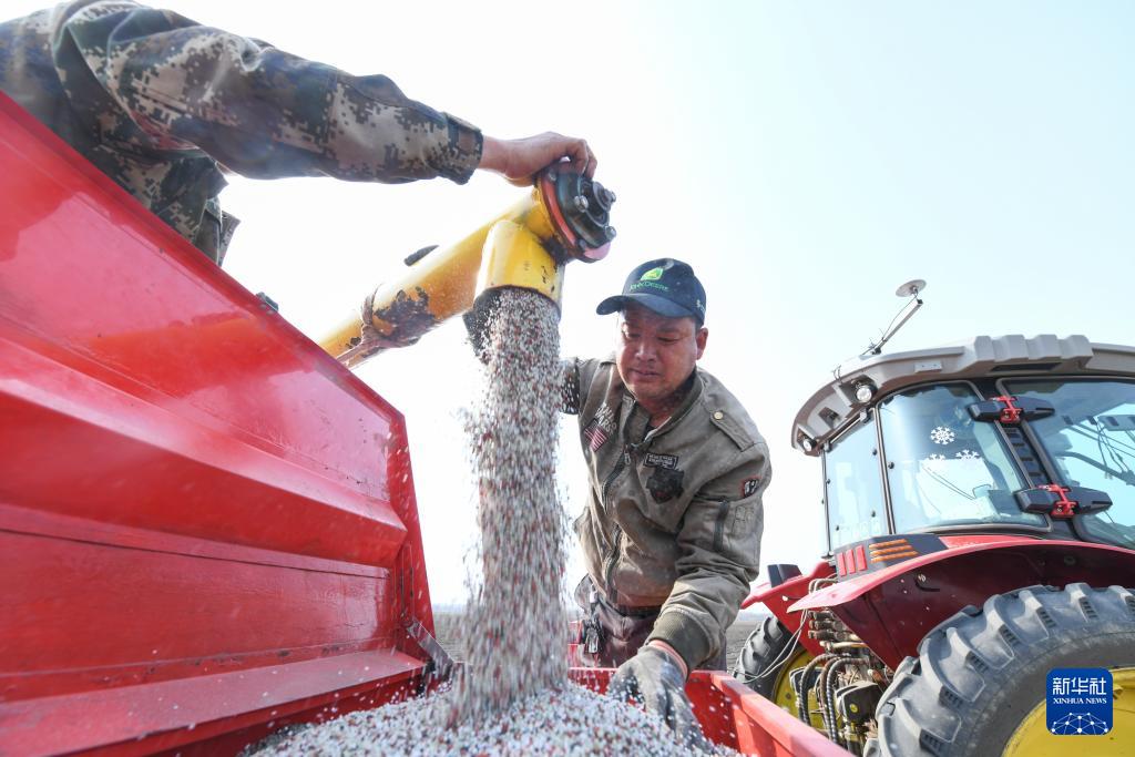 4月25日,在黑龍江北大荒農(nóng)業(yè)股份有限公司友誼分公司第五管理區(qū)一地塊,農(nóng)機手將化肥加進農(nóng)業(yè)機械設備中。