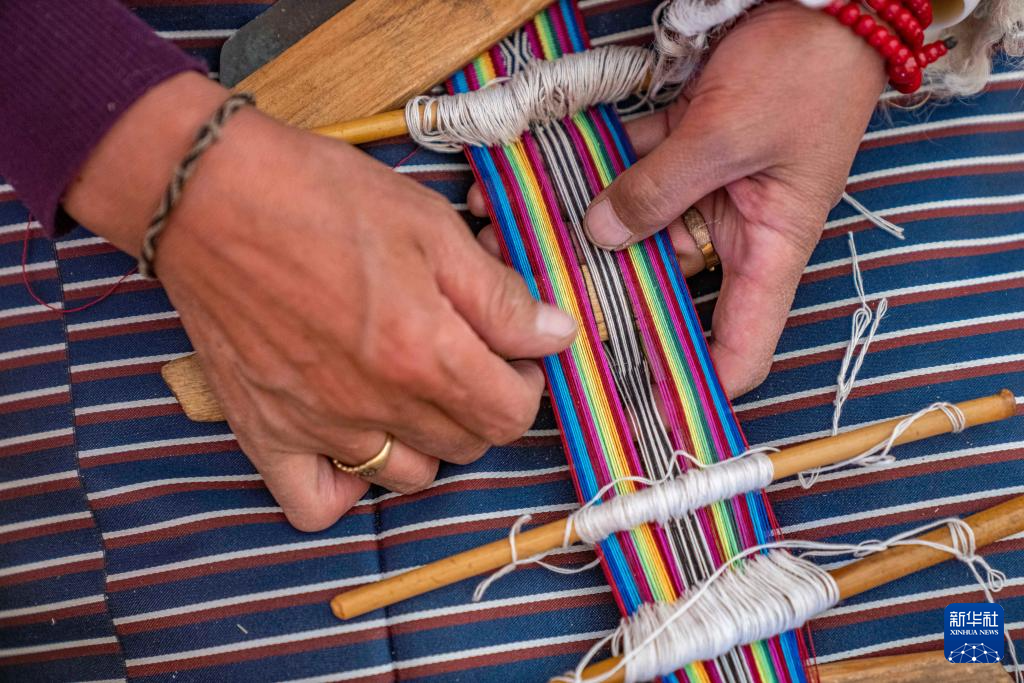 5月12日,在那曲市聶榮縣尼瑪鄉(xiāng),農(nóng)牧民選手在進(jìn)行手工編織技能比賽。