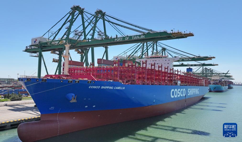 當(dāng)日,隨著“中遠(yuǎn)海運(yùn)山茶”輪駛離天津港太平洋國際集裝箱碼頭,標(biāo)志著天津港至美東的新航線正式開通。據(jù)了解,該航線共投入9艘集裝箱船,以每周一班的方式運(yùn)營(yíng),進(jìn)一步暢通我國北方通達(dá)美國的海上物流通道。新華社記者 趙子碩 攝