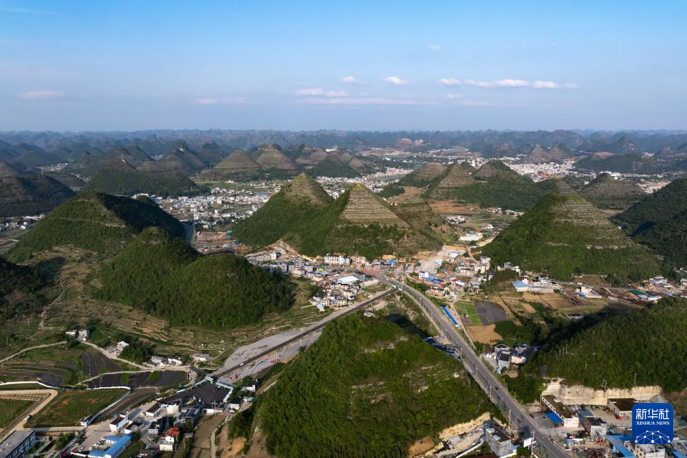 這是安龍縣郊外形狀酷似金字塔的山體(無人機照片,5月14日攝)。