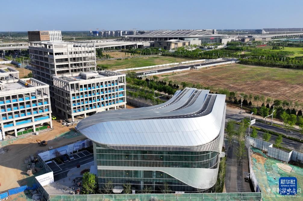 5月21日拍攝的雄安新區(qū)雄安站樞紐片區(qū)的中國能建“能建·新能源生態(tài)城”項目展示區(qū)(無人機(jī)照片)。