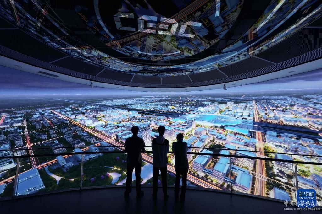 5月21日,在雄安新區(qū)雄安站樞紐片區(qū)的中國能建“能建·新能源生態(tài)城”項目展示區(qū)內(nèi),游客通過球形大屏了解園區(qū)概況。
