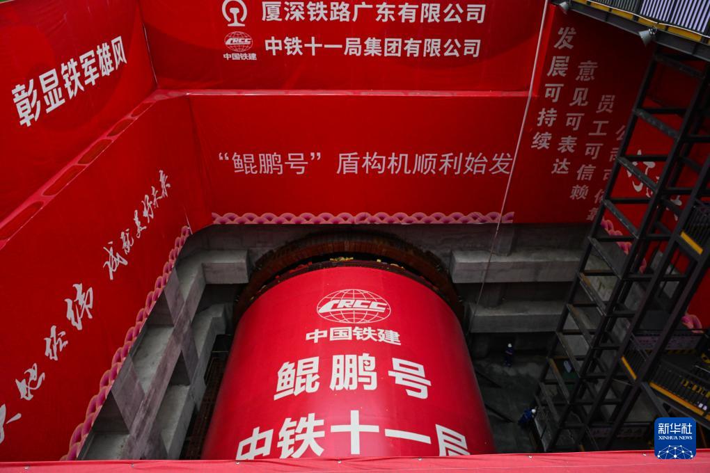 當(dāng)日,由中鐵十一局承建的深江鐵路深莞隧道西段“鯤鵬號(hào)”盾構(gòu)機(jī)順利始發(fā)。該段是13米級(jí)大直徑單洞雙線隧道,線路埋深跨度在9至62米。