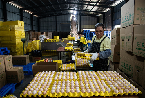 對于雞蛋的銷售,公司采取線上、線下兩種方式,穩(wěn)定銷廣東、貴陽、重慶、香港等地。年銷售雞蛋3.2億枚,產(chǎn)值9200多萬元。(圖/金可文 文/陳光昌)