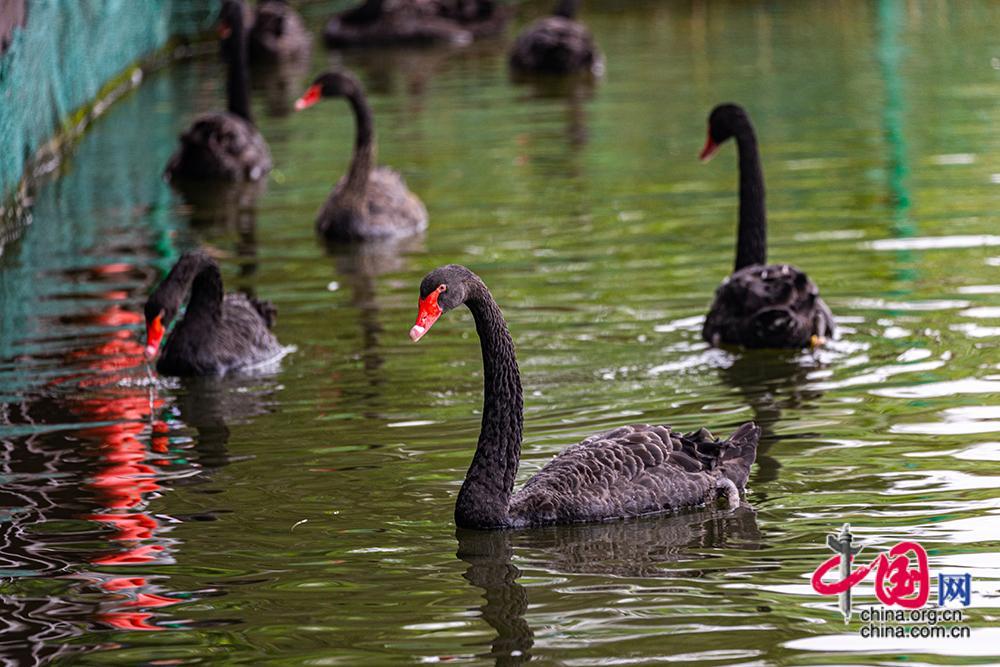 圖為生活在五緣灣濕地公園的黑天鵝。中國網(wǎng)記者 倫曉璇 攝