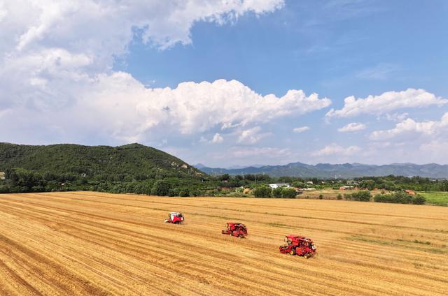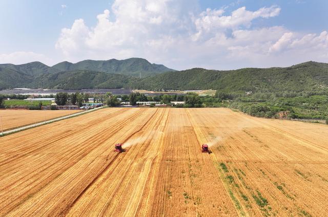 眼下正值小麥?zhǔn)斋@期,北京市平谷區(qū)搶抓農(nóng)時(shí)積極投入到夏收當(dāng)中,田間地頭一派豐收景象。據(jù)悉,今年平谷區(qū)小麥在田面積3萬(wàn)余畝,總產(chǎn)量有望超過1萬(wàn)噸。