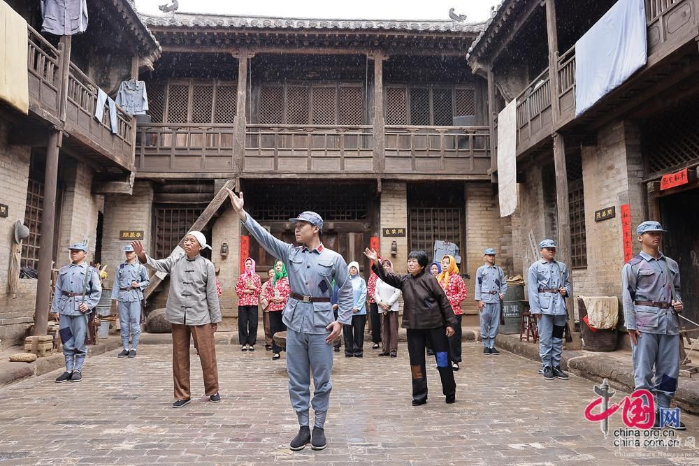 在太岳軍區(qū)被服廠舊址,上莊村村民表演紅色題材實(shí)景劇《上莊保衛(wèi)戰(zhàn)》。 中國(guó)網(wǎng)記者 董寧 攝影