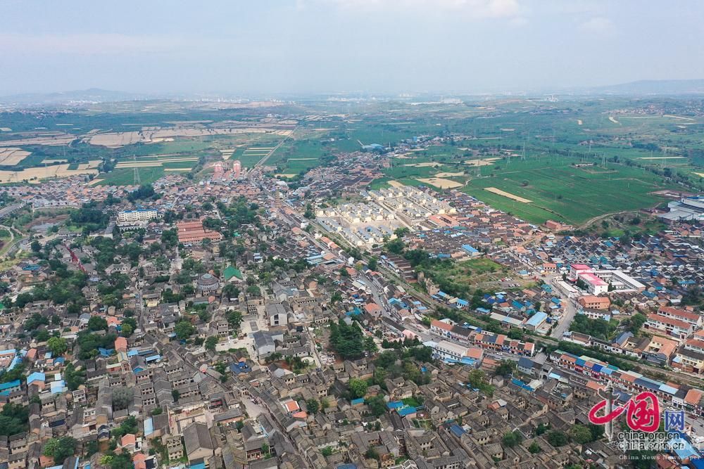 俯瞰大陽(yáng)古鎮(zhèn)一分街村萬里茶道博物館,形似棋盤,又稱“棋盤四院”。中國(guó)網(wǎng)記者 董寧 攝影