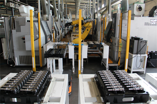 南岳電控共軌車間機(jī)械手臂取代人工。
