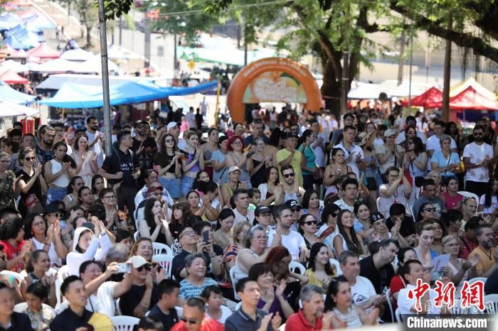 當(dāng)?shù)貢r間2月11日,巴西伊瓜蘇和平廣場,前來觀看文藝演出的觀眾?!」次?攝