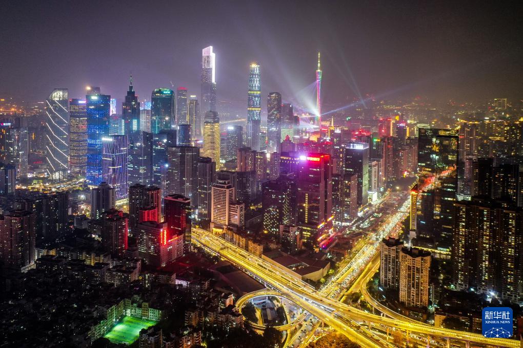 廣州珠江新城夜色迷人(2023年11月25日攝,無人機(jī)照片)。