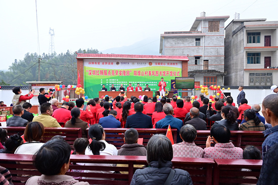 11月16日,由深圳獅子會主辦的“深圳紅獅服點亮早安隆回”春風圖書館在湖南省隆回縣金石橋鎮(zhèn)陽垠山村舉行開館儀式并揭牌。深圳獅子會各服務(wù)團隊會員和隆回縣相關(guān)部門的領(lǐng)導以及當?shù)厝罕姅?shù)百人參加了開館儀式。