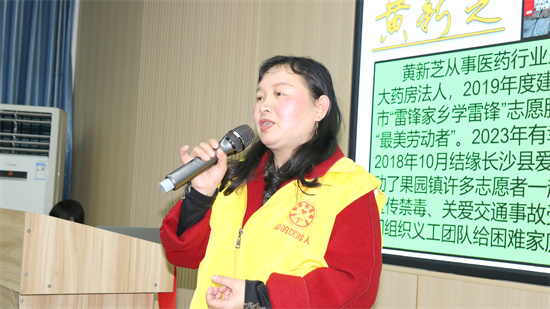 隨后,“星沙好人”、長(zhǎng)沙縣愛(ài)的擺渡人義工發(fā)展中心副理事長(zhǎng)張金花講述了自己在公益路上的點(diǎn)點(diǎn)滴滴和長(zhǎng)沙縣愛(ài)的擺渡人義工發(fā)展中心這些年來(lái)眾多幫扶對(duì)象中的佳程還有小淼淼這兩個(gè)交通事故受害者家庭孩子之間的動(dòng)人故事。“星沙好人”、長(zhǎng)沙縣愛(ài)的擺渡人義工發(fā)展中心理事兼果園鎮(zhèn)戰(zhàn)站長(zhǎng)黃新芝娓娓道來(lái)帶領(lǐng)義工持續(xù)六年幫助關(guān)愛(ài)因交通事故失去兒子的“李爸李媽”家那份感人至深的“女兒情”。聆聽(tīng)好人們用實(shí)際行動(dòng)詮釋著“奉獻(xiàn)、友愛(ài)、互助、進(jìn)步”的志愿服務(wù)精神,同學(xué)們深受觸動(dòng),紛紛表示要將所學(xué)所感轉(zhuǎn)化為實(shí)際行動(dòng),積極參與到志愿服務(wù)中去,為社會(huì)貢獻(xiàn)自己的一份力量。