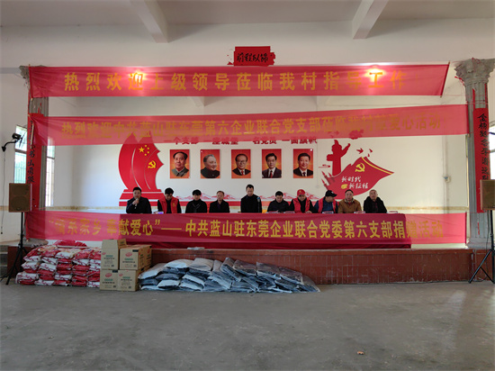 駐東莞企業(yè)聯(lián)合黨委第六企業(yè)黨支部,由多家藍山駐東莞企業(yè)黨員組成,他們在辦好企業(yè)的同時,積極組織黨員開展“重溫入黨誓詞”“獻愛心”等活動,讓黨旗高高飄揚在企業(yè),成為企業(yè)不斷發(fā)展的“精神動力”。與此同時,黨支部心系家鄉(xiāng),經(jīng)?;丶亦l(xiāng)開展獻愛心活動。2020年在新冠疫情發(fā)生的嚴重時期,他們購買口罩、噴霧器、消毒液等消毒物質(zhì)和資金送回家鄉(xiāng)楠市鎮(zhèn),支持楠市鎮(zhèn)抗疫情。2019年1月,第六企業(yè)黨支部書記黃書源、副書記陳國富,支部成員王當文、楊孝亮等帶隊,到犁頭瑤族鄉(xiāng)開展助學活動,對十名貧困學生及家庭進行資助幫扶。支部還為藍山在廣東的企業(yè)進行積極維權(quán)行動,用法律武器維護企業(yè)的合法權(quán)益。