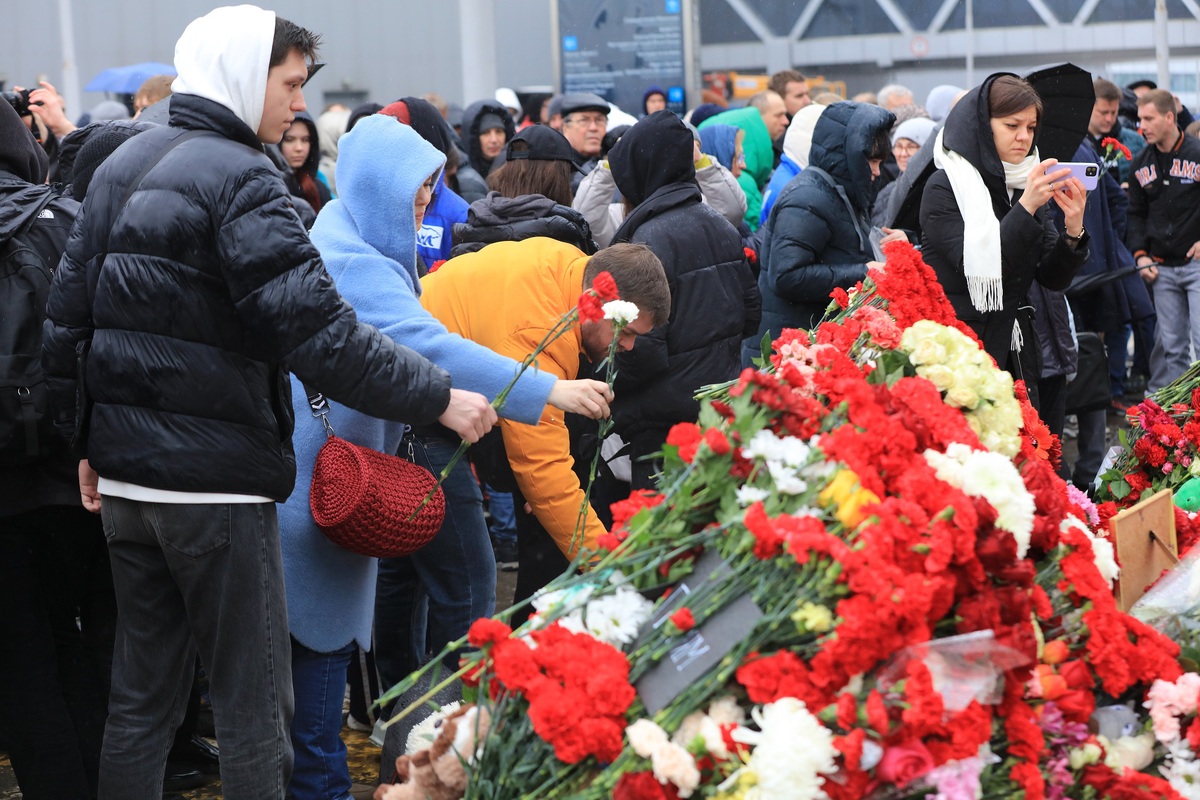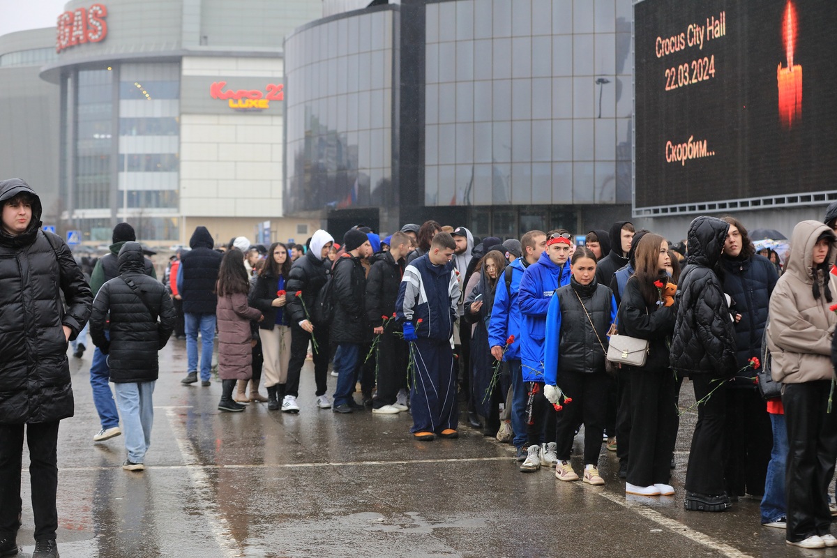 3月24日,莫斯科民眾來到發(fā)生恐怖襲擊的莫斯科州紅山區(qū)“克羅庫斯城”音樂廳,寄托對遇難者的哀思。 中國日報(bào)記者 任奇 攝