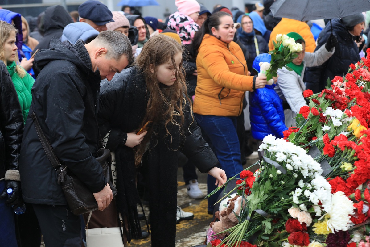 中國日報(bào)莫斯科3月24日電(記者 任奇)3月24日是俄羅斯全國哀悼日。莫斯科民眾一早就自發(fā)來到周五晚發(fā)生恐怖襲擊的莫斯科州紅山區(qū)“克羅庫斯城”音樂廳,擺放鮮花,布偶等物品,寄托對遇難者的哀思。