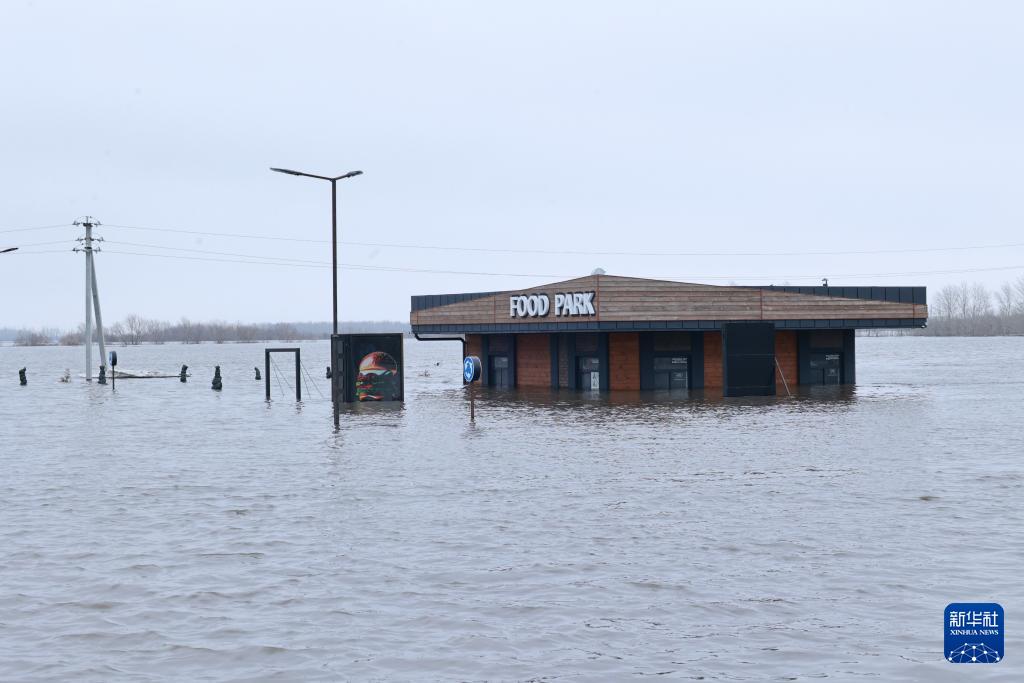 4月7日,哈薩克斯坦科斯塔奈州的一家店鋪被洪水淹沒。