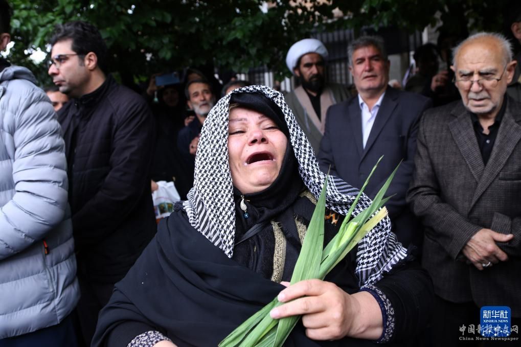 5月21日,在伊朗大不里士,人們參加為總統(tǒng)萊希及其隨行人員舉行的遺體告別儀式。