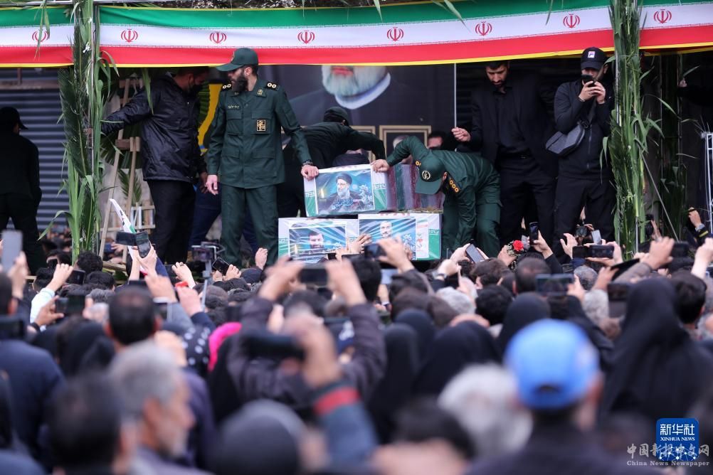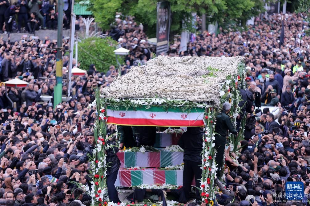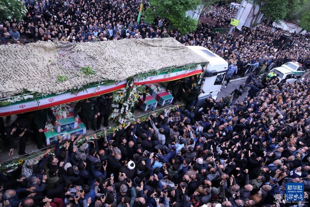 伊朗21日在東阿塞拜疆省省會大不里士為總統(tǒng)萊希及其隨行人員舉行遺體告別儀式。新華社發(fā)