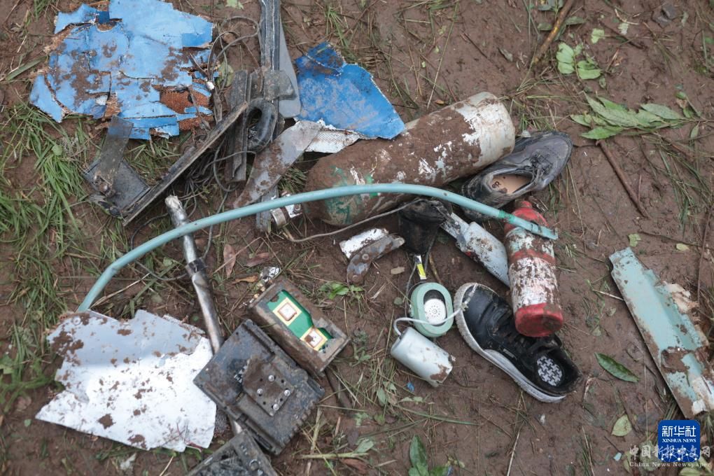 這是8月7日在尼泊爾加德滿都附近的努瓦果德地區(qū)拍攝的墜毀直升機(jī)上的物品。新華社發(fā)(蘇拉韋·什雷斯塔攝)