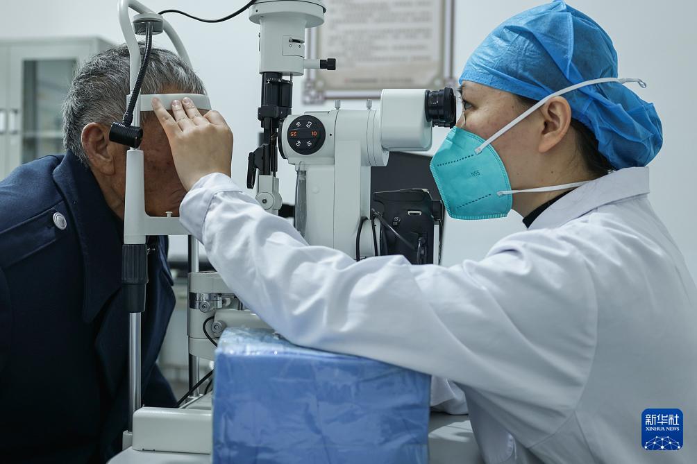 12月12日,在撫州市中醫(yī)醫(yī)院門診,胥思洋為聞訊趕來求醫(yī)的白內(nèi)障患者進行眼部檢查。