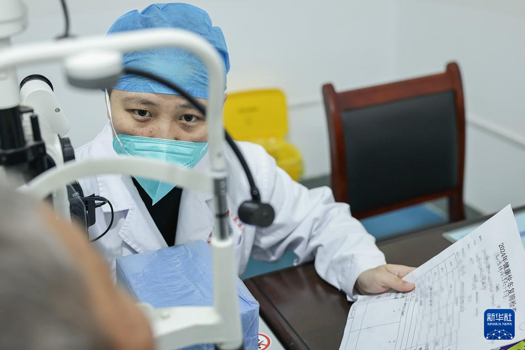 12月12日,胥思洋在撫州市中醫(yī)醫(yī)院門診為聞訊趕來求醫(yī)的白內(nèi)障患者講解篩查結(jié)果。