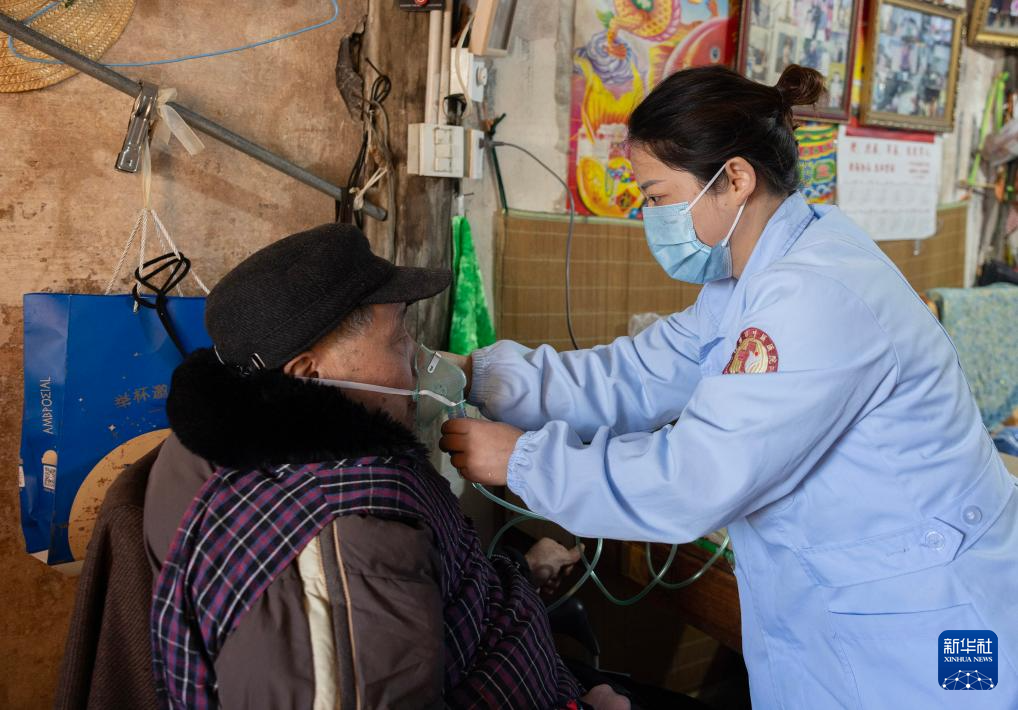 12月21日,浙江省諸暨市浬浦鎮(zhèn)中心衛(wèi)生院的網(wǎng)約護(hù)士上門為老人做霧化。