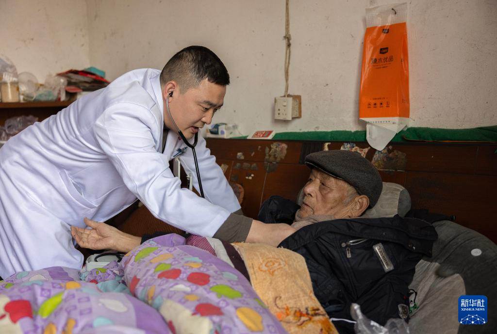 12月21日,浙江省諸暨市浬浦鎮(zhèn)中心衛(wèi)生院的簽約醫(yī)生上門為老人聽診。