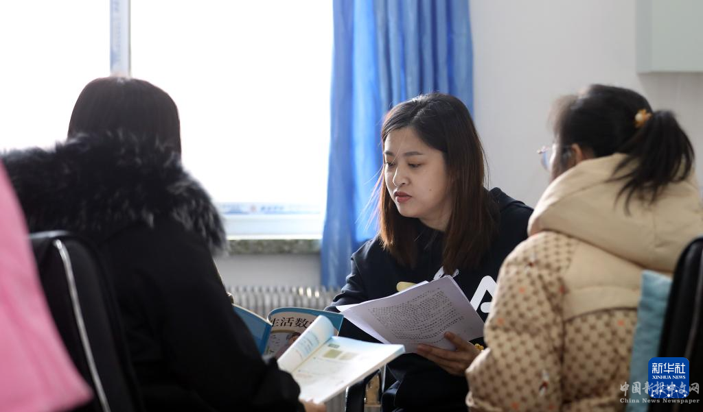 2月29日,鳳城特殊教育學(xué)校的老師趙閱和數(shù)學(xué)組其他老師在集體備課。