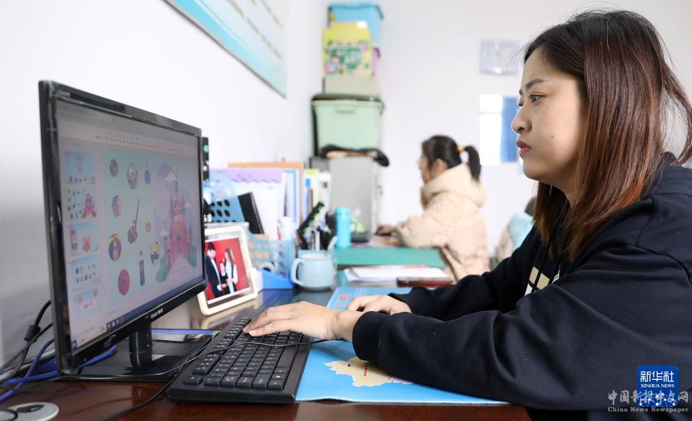 2月29日,鳳城特殊教育學(xué)校的老師趙閱在辦公室準(zhǔn)備上課課件。