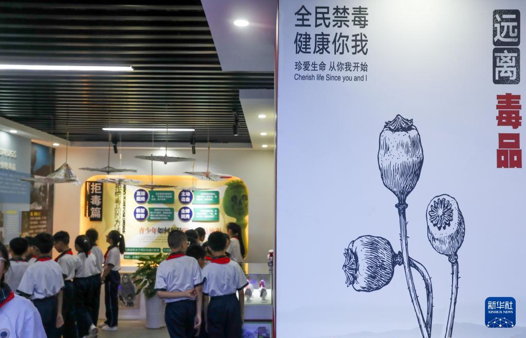 6月25日,貴州省畢節(jié)市第二實(shí)驗(yàn)高中學(xué)生在參觀高仿毒品模型。
