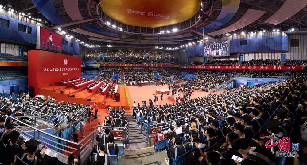 7月2日, 北京大學(xué)2024年本科生畢業(yè)典禮暨學(xué)位授予儀式在邱德拔體育館舉行。中國網(wǎng)記者 鄭亮攝