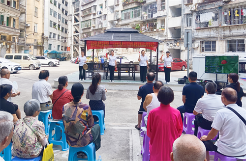 “黨紀(jì)學(xué)習(xí)及時雨,條例精華人人記,學(xué)習(xí)教育很出彩,解心懷!……”7月29日,在福建永安市燕北街道社區(qū)居民議事亭,鑼鼓镲聲,激昂響亮,新穎獨特的《黨紀(jì)黨規(guī)印心間》“三句半”宣講,立馬吸引了眾多群眾駐足聆聽。