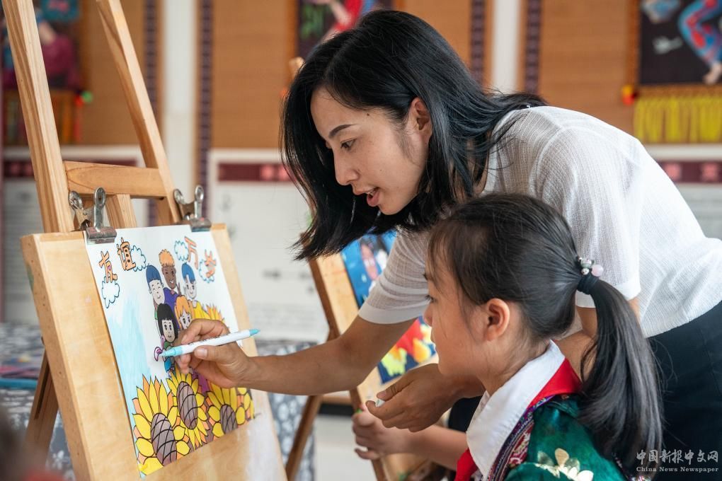 9月2日,在中國(guó)-赤道幾內(nèi)亞友誼小學(xué),老師在指導(dǎo)學(xué)生繪畫(huà)。