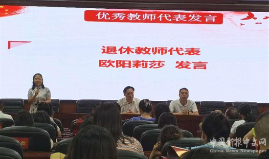 退休教師代表歐陽莉莎寄語教師們要傾心教育,做有境界的教師;用心教書,做有責(zé)任的教師;潛心研究,做有思想的教師;醉心課堂,做有激情的教師;真心奉獻(xiàn),做有愛心的教師。為“大力弘揚(yáng)教育家精神,加快建設(shè)教育強(qiáng)國”添磚加瓦;為實(shí)驗(yàn)教育的騰飛,為莘莘學(xué)子的夢想增光添色;為“實(shí)驗(yàn)”教育事業(yè)美好的明天貢獻(xiàn)智慧力量!