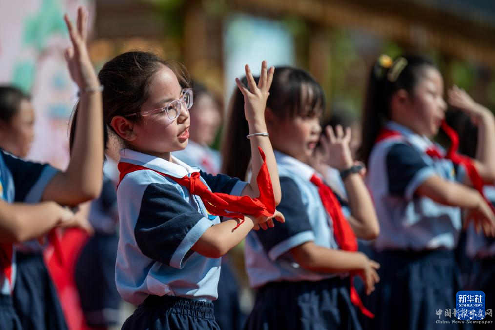 9月30日,湖北省黃石市沈家營小學(xué)的小朋友們在迎國慶活動上表演節(jié)目。